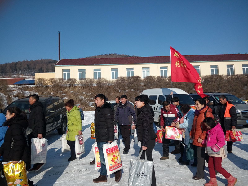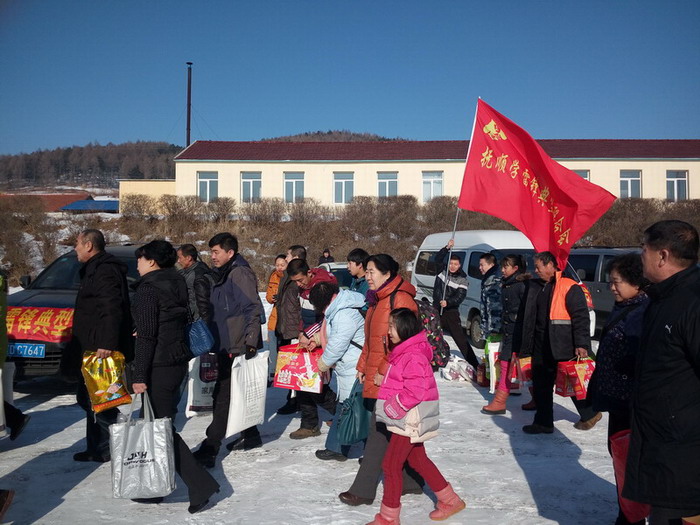 早上9點(diǎn),滿(mǎn)載著大米、白面、豆油等捐助物的7輛汽車(chē)從撫順北站出發(fā),一路向東前往清源甘井子小學(xué)。中午10點(diǎn)半,車(chē)隊(duì)到達(dá)清源英額門(mén)鎮(zhèn),在當(dāng)?shù)貙W(xué)雷鋒典型聯(lián)合會(huì)分會(huì)劉先生的帶領(lǐng)之下,車(chē)隊(duì)于11點(diǎn)到達(dá)了清源甘井子小學(xué)。車(chē)輛剛剛駛?cè)雽W(xué)校,迫不及待的學(xué)生以及學(xué)生家長(zhǎng)們就都出門(mén)迎接了出來(lái)。找到各自幫扶對(duì)象的17位孩子見(jiàn)到了自己的資助人都激動(dòng)得熱淚盈眶。在甘井子小學(xué)高校長(zhǎng)的帶領(lǐng)下,大家把資助物品紛紛運(yùn)到了學(xué)校食堂。在食堂把物品授予了這17位孩子,百姓雷鋒們也為他們派發(fā)了新春紅包,并與他們進(jìn)行了親切的交流,目的是鼓勵(lì)這17位家庭困難的學(xué)生好好學(xué)習(xí),勇敢的面對(duì)生活。